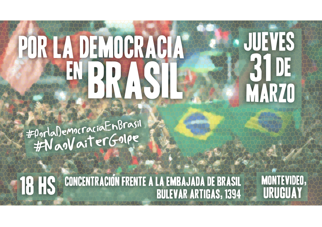 Por eso, llamamos junto al PIT – CNT a todo el pueblo uruguayo a movilizarse en defensa de la democracia en Brasil este jueves frente a la Embajada de ese país en Montevideo, a las 18 horas.
