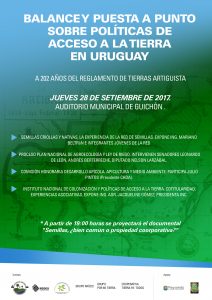Como en otras oportunidades, el Colectivo de Vecinos de Guichón en Defensa de los Bienes Naturales, junto a Redes-Amigos de la Tierra Uruguay y la Red de Semillas Nativas y Criollas organizan una jornada de balance y puesta a punto sobre procesos asociativos de acceso a la tierra junto al Instituto Nacional de Colonización y miembros de grupos de aspirantes o usufructuarios de tierras públicas.