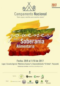 Los días 29 y 30 de setiembre y 1º de octubre se desarrollará el 2do. Campamento de Jóvenes por la Soberanía Alimentaria en la Escuela Agraria “Melchora Cuenca” y el Establecimiento “El Ombú” de la ciudad de Paysandú, bajo el lema “tierra, agua y semillas para nuestras manos”, donde se esperan aproximadamente 100 jóvenes de distintos grupos de la Red en todo el país.