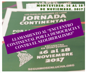 La “Jornada Continental por la Democracia y Contra el Neoliberalismo” como proceso en construcción, nos encontrará en Montevideo para profundizar en nuestras visiones compartidas, sumar nuevas voces y ampliar el protagonismo diverso que representamos. No tenemos duda que de ese encuentro daremos muchos pasos en nuestra construcción como un sujeto político que emprenderá más y más luchas y movilizaciones continentales. La solidaridad y el internacionalismo marcarán nuestras acciones y alianzas como pueblos de las Américas y del mundo.