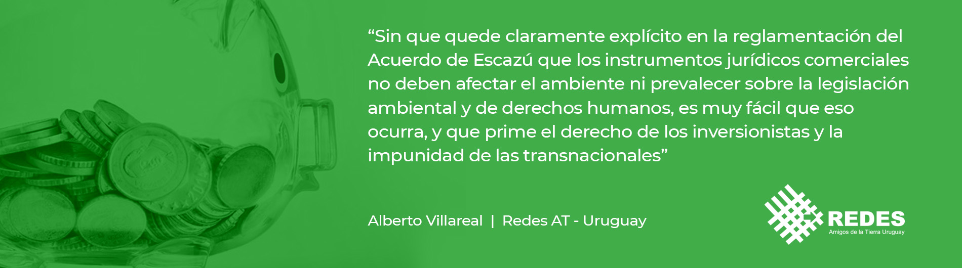 Villarreal alertó: “Sin que quede claramente explícito en la reglamentación del Acuerdo de Escazú que los instrumentos jurídicos comerciales no deben afectar el ambiente ni prevalecer sobre la legislación ambiental y de derechos humanos, es muy fácil que eso ocurra. Y que así prevalezca el derecho de los inversionistas y la impunidad de las empresas transnacionales, gracias a instrumentos como los Tratados de Libre Comercio y los Tratados Bilaterales de Protección de Inversiones, e incluso los contratos Inversionista-Estado y de participación público-privada. Esos instrumentos usualmente habilitan a los inversionistas extranjeros a demandar al Estado por políticas públicas incluso de protección ambiental y de derechos humanos, que a su juicio puedan afectar sus ganancias e inversiones”.